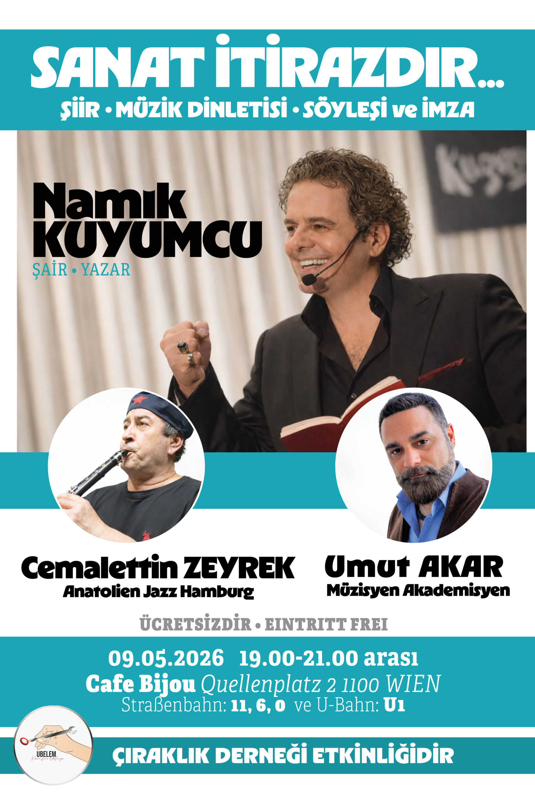 Viyana’da sanatseverleri bir araya getirecek anlamlı bir etkinlik için geri sayım başladı. “Sanat İtirazdır” başlığıyla düzenlenen şiir, müzik dinletisi, söyleşi ve imza günü, 9 Mayıs 2026 tarihinde gerçekleştirilecek. Çıraklık Derneği’nin organizasyonuyla hayata geçirilen etkinlik, hem edebiyat hem de müzik alanında önemli isimleri aynı sahnede buluşturacak.