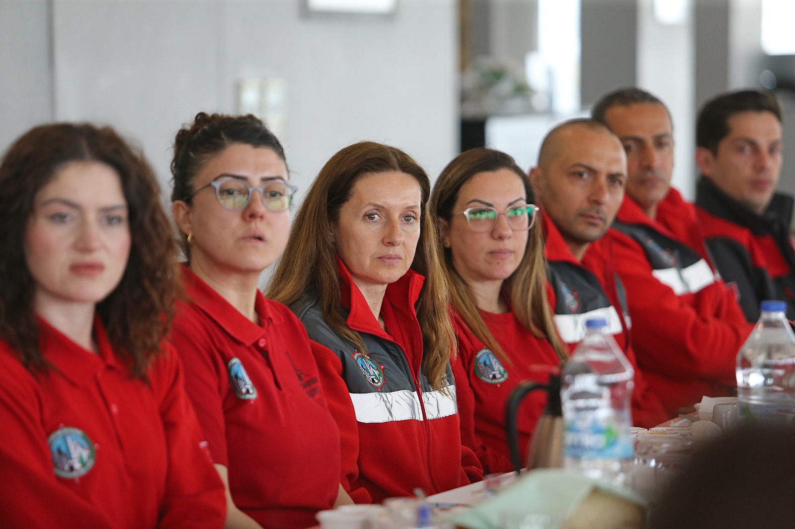 Karşıyaka Belediyesi Arama Kurtarma Ekibi için Vali Yardımcısı İsmail Çorumluoğlu ve AFAD İzmir İl Müdürü Nazif Ekinci’nin de katılımıyla düzenlenen toplantıda konuşan Karşıyaka Belediye Başkanı Yıldız Ünsal, “Dirençli bir Karşıyaka için var gücümüzle çalışmaya devam edeceğiz, hepiniz iyi ki varsınız” dedi.